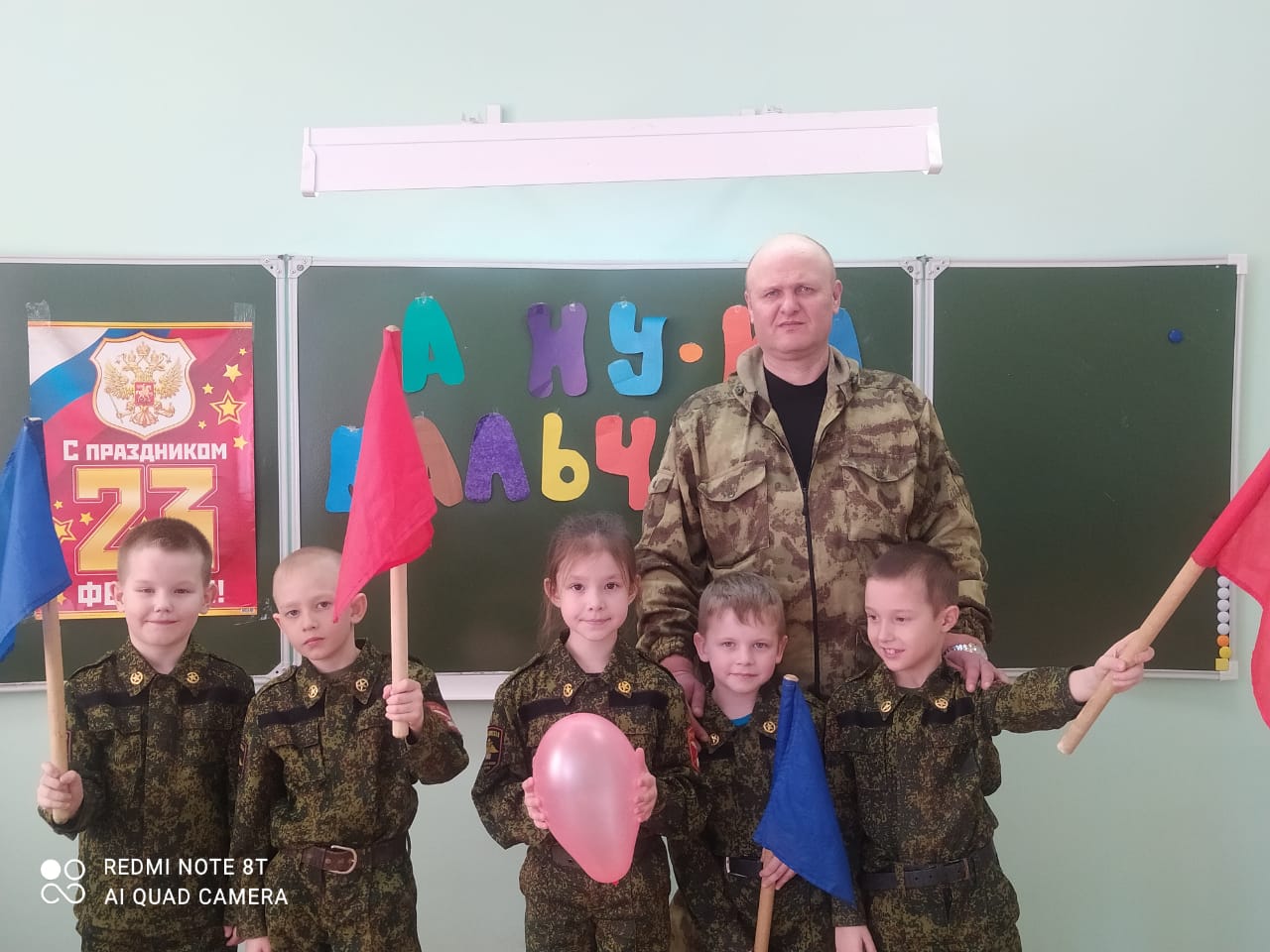 Опубликовано: 24.02.202224 февраля было проведено внеклассное мероприятие "А ну-ка мальчики!" с участием мальчиков 1 класса. Цель: познакомить с историей праздника, создать атмосферу праздника в игре- соревновании. Мальчики соревновались между собой. Жюри присудил 1 место Ощепкову М.,2 место Никитину Д., 3 место Огорельцеву В. и Шимановскому Е..