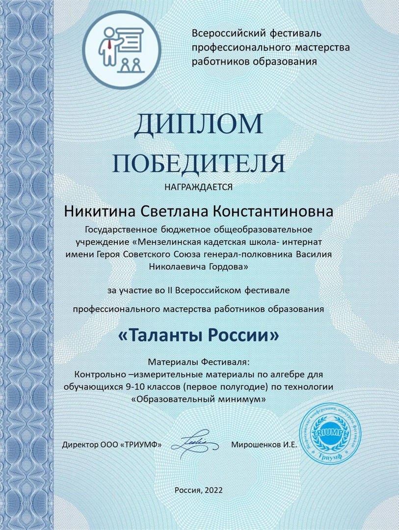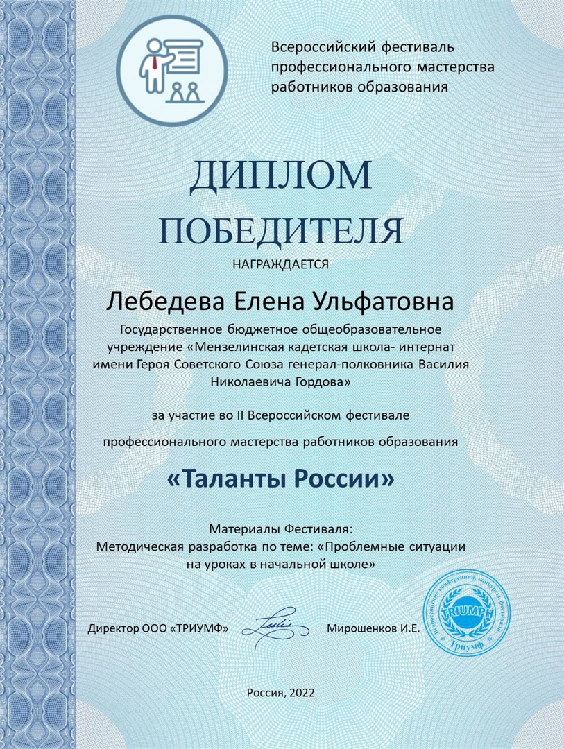Безнең педагоглар Лебедева Е.у., Пермякова Н.В., Никитина С.К. һәм Пермяков Н. В. мәгариф хезмәткәрләренең « Россия талантлары» икенче Бөтенроссия һөнәри осталык