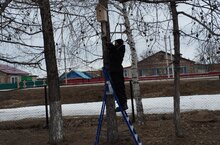 Учащиеся школы повесили скворечники на территории школы. 06.04.2024
