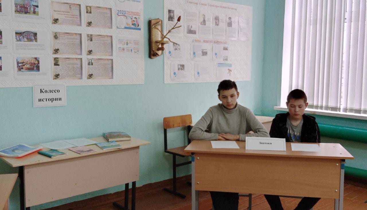 В школе прошла викторина "Колесо истории" среди учащихся старших классов. Задачи викторины – мотивирование учащихся к изучению истории родного края, развитие познавательных способностей.Познавательная викторина "Колесо истории" способствовала углублению знаний по истории освоения и заселения Поволжья, познакомила участников с бытом, занятиями, одеждой, кухней татар и кряшен.