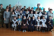 Ученица 6 класса Гермагентова Инзиля и ученик 4 класса Козлов Артем в сопровождении учителей Рахматуллиной А.Г. и Мороз З.Р. проведали ветерана тыла Остроумову Марию Петровну, жительницу села Кадряково.