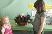 Бакча коллективы, бачада тәрбияләнүче балалар белән берлектә Бөек Ватан сугышында ятып калганнар истәлегенә обелискка салырга корзина әзерләде.