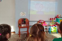 Наших воспитанников посетила библиотекарь сельской библиотеки Апсаттарова Л.М. и прочитала детские произведения на трех языках.