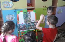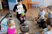 Сегодня была организована экскурсия в сельскую библиотеку тема которой была "По сказкам Корнея Ивановича Чуковского". Библиотекарь показала книги с произведениямим К.Чуковского, одну из них, "Муха - Цокотуха" зачитала малышам. Ребята увлеклись раскрасками по произведениям писателя и не заметили как пришло время расставаться. Всем детям понравилась экскурсия.