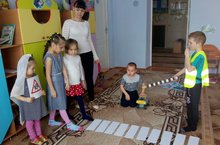 Сегодня с воспитанниками нашего сада была разыграна ситуация по ПДД в ходе которой закрепили знания об улице, дороге, перекрестке и элементарных правилах поведения на дорогах.