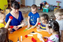 Идет подготовка в Международному женскому дню. Сегодня с воспитанниками нашего сада сделали аппликацию для наших мам.