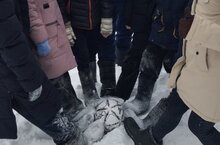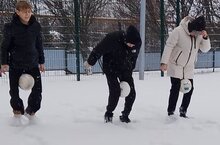 Проведена акция "Здоровый Новый год!", и стар и млад играл футбол в валенках.