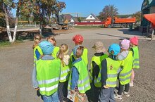 В процессе прогулки дети повторили правила дорожного движения, знаки и как правильно переходить дорогу, так же дети наблюдали за работой дорожного транспорта.
