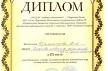 Воспитатель Шаматова Н.А. приняла участие в республиканском конкурсе на лучшую авторскую дидактическую игру по нравственно-патриотическому воспитанию и заняла 3 место. Поздравляем! Желаем дальнейших успехов!