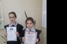 Учащиеся 4 класса приняли участие во всероссийском конкурсе "Мир знаний" и заняли призовые места. Тазирова К. - 2 место по русскому языку, 3 место по математике, Шимановская Дарья 3 место по математике и 3 место по русскому языку.