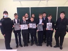 ПДН инспекторлары өлкән сыйныф укучыларына "тәмәке тартуның, наркотикларның һәм алкогольнең зыяны, балигъ булмаганнарның һәм аларның ата-аналарының җаваплылыгы һәм хокуклары турында" дигән темага лекция үткәрделәр. Балалар кызыксынып тыңладылар һәм әңгәмәдә актив катнаштылар.