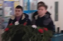 В школе прошла линейка, посвященная 75-летию разгрома фашистов под Сталинградом. Учащиеся школы возложили гирлянду к памятнику неизвестного солдата.