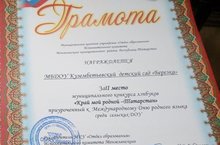 - 2 место в муниципальном конкурсе лэпбуков "Край мой родной - Татарстан" (выполнила воспитатель Юсупова Г.Р.)