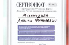 13 марта учитель английского языка Мухамадиев Д.Ф. принял участие во Всероссийском форуме «Педагоги России», организованный на базе Набережночелнинского филиала КФУ. В ходе деловой программы педагог ознакомился с инновациями в системе образования, поучаствовал в мастер классах. В программе форума лекторы не просто делились опытом, а полностью подготовили свой проект для внедрения в образовательных организациях.