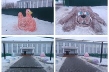 В школе началась подготовка к новогодник праздникам. Учащиеся школы сделали снежные фигуры.