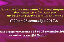 С 20-28 сентября 2017 года для учащихся 5-х классов общеобразовательных организаций Российской Федерации проводится независимое компьютерное тестирование по русскому языку и математике.