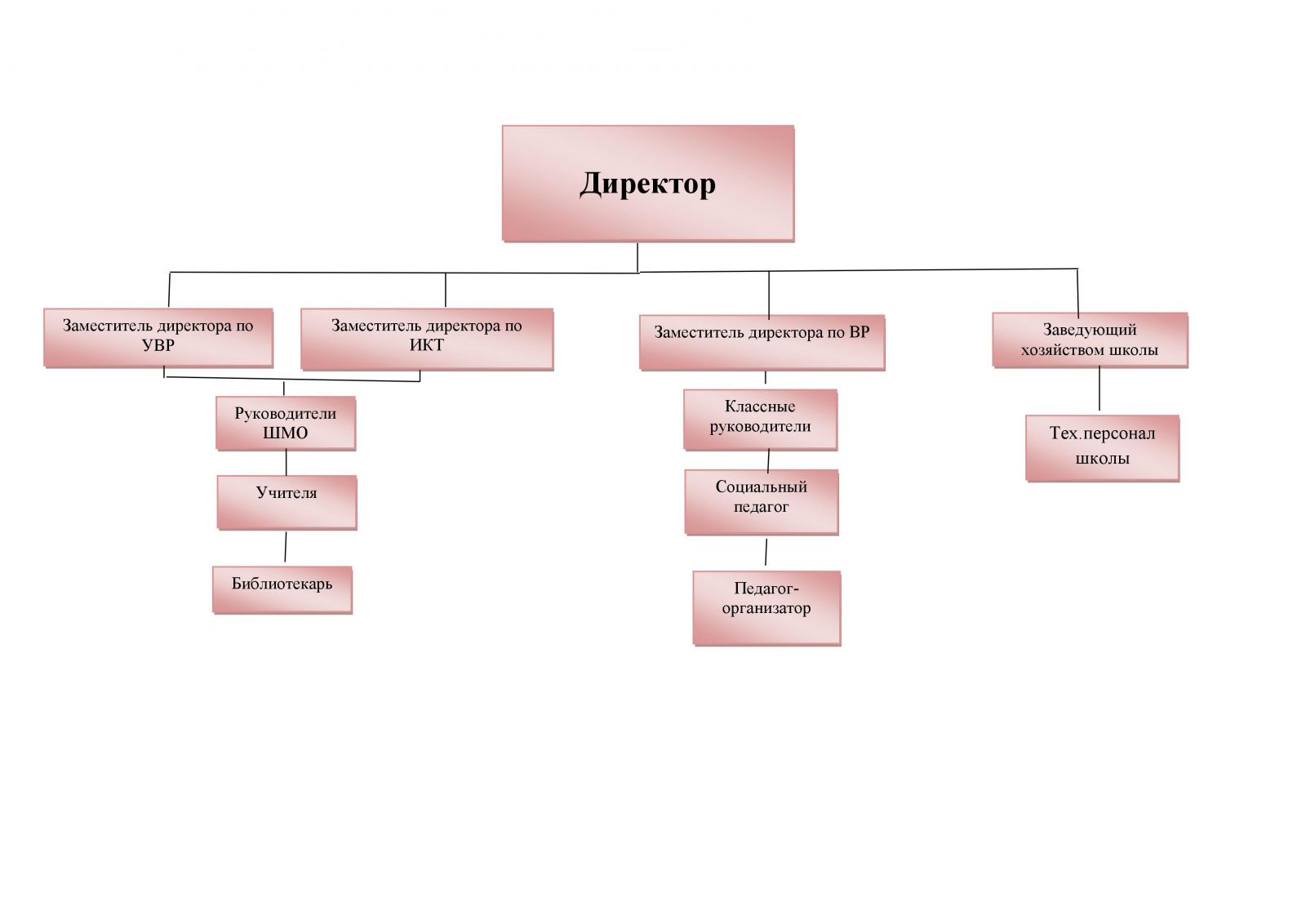 Непосредственное управление школой осуществляет директор Валиуллин Фарид Хабибуллович, прошедший аттестацию, действующий в соответствии с законодательством Российской Федерации, Уставом школы, трудовым договором и должностной инструкцией.