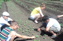 После завтрака, все получив разнарядку, отправляются на работы: мальчики ремонтируют заборы, ученики средних классов пропадывают грядки и поливают, а самые маленькие собирают соцветия липы и лекарственные травы.