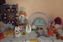 Под девизом "Вторая жизнь отходам" была подготовлена выставка, где были представлены коврики из полиэтиленовых пакетов, стул-из пластиковых бутылков, салфетница из дисков, игрушки из губки, оригиальные подделки из одноразовой посуды. Это вызвало огромное эстетическое удовольствие учителей и учащихся школы.