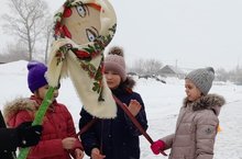 собрала вместе учеников нашей школы и жителей села возле сельского дома культуры: игры, песни, танцы, ярмарка, призы, подарки, блины с чаем и и каша на костре. Хорошо Масленица горела!
