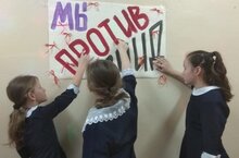 отметился в нашей школе красной ленточкой на руке. А затем мы бантики из этих лентоек приклеили к плакту.