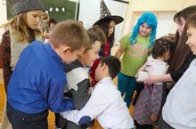 Мәктәп активистлары кече яшьтәге укучылар өчен "Хэллоуэн"дип исемләнгән курку бәйрәме үткәрделәр. Балалар бик канәгать калдылар.