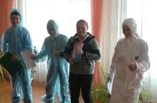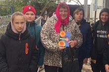 Безнең волонтерлар өлкән яшьтәге педагогларда булдылар. Бүләккә открыткалар, җырлар һәм шигырьләр алып килделәр.