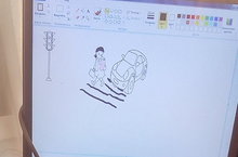 Подгруппа кружка "Художественное творчество" создает плакат по безопасности дорожногодвижения.