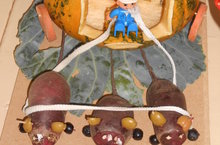 На осенний бал в начальных классах все участники приготовили оригинальные подделки.Ученица из первого класса Мингазова Азалия сделала из овощей и фруктов карету.На празднике было всем весело.