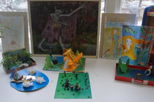 В детском саду проходил конкурс поделок по мотивам татарских национальных сказок. Дети, совместно с родителями приняли активное участие. Каких только поделок не представили на конкурс, все они сделаны из различных материалов: нитки, тесто, бисер, бумага, пластилин и др.