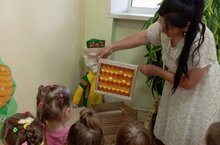 Сегодня дети средней группы посетили “Детский агропарк”. Они продолжили знакомство с профессией “пчеловод”. Дети вспомнили термины: нектар, умарта, кәрәз, умарталык, умартачы (нектар, улей, соты, пасека, пчеловод) закрепили счет от 1 - 5 на татарском языке с помощью дидактической игры “Веселые пчелки”.