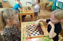 2023 елның 15 декабрендә өлкән һәм әзерлек төркеме балалары белән танып белү үсеше буенча күңел ачу шахмат мавыктыргыч уен үткәрелде . Балалар шахмат фигуралары турында табышмакларны бик теләп чишәләр, "яртысын тап", "шахмат фигурасын җыеп әйт" уеннарын уйныйлар, шахмат уйнау осталыкларын күрсәтәләр.
