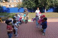 1 сентября в детском саду “Алтынчеч” было проведено мероприятие, посвященное “Дню Знаний”. Мероприятие прошло в праздничном настроении. К детям пришла девочка-ковбой из мультфильма «Истории Игрушек» и поиграла с ними в следующие игры: «Имена», «Собери Портфель», «Школьные Загадки», «Эстафета на Лошадках». Дети проехались по 5ти станциям Отвечалкина, Сказочная, Школьная и т.п. Дети получили хороший заряд энергии, веселое настроение , соприкоснулись с основами английского языка, научились считать по-английски и танцевать ковбойский танец.