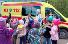 В рамках реализации программы дополнительного образования "Стремление в будущее" - "Киләчәккә омтылыш" по модулю "Профориентация", 26 мая дети подготовительной группы МБДОУ #2 "Алтынчеч" ходили на экскурсию в центральную районную больницу. Познакомились с профессией - фельдшер скорой помощи. Ландыш Гумаровна рассказала о своей работе, о долге медика оказывать помощь людям. С детьми побеседовал заместитель главного врача Хабибуллин М. С