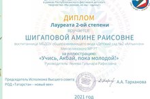 2 нче балалар бакчасы тәрбиячесе Якиева ГӨЛНАРА РАФИС кызы туган телләр һәм Татарстан Республикасында Халык бердәмлеге елы кысаларында "ТНВ" Республика иҗтимагый оешмасы оештырган "Безнең йорт-җир" конкурсында катнашты һәм җиңүче булды. КФУның Алабуга институтында мәктәп укытучыларының XI Халыкара фестивалендә җиңүчеләр дипломнар һәм бүләкләр белән бүләкләнде.