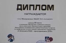 "Алтынчәч" 2 нче санлы балалар бакчасында тәрбияләнүче Хәмитов Азамат "Юл-транспорт һәлакәтләрен кисәтәбез" дип исемләнгән бәйгедә катнашты һәм "Татар телендә юл хәрәкәте куркынычсызлыгы буенча шигырь" номинациясендә II урынны яулады. Аңа грамота һәм бүләк тапшырдылар.