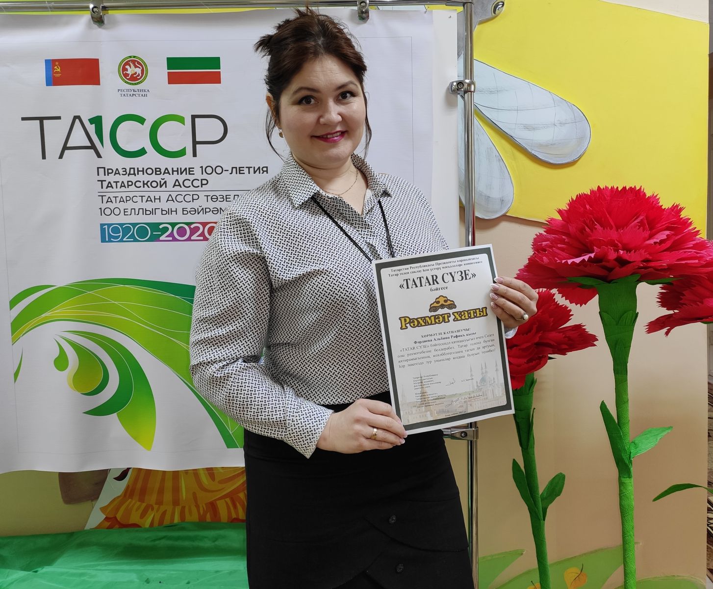 "Алтынчәч" балалар бакчасы тәрбиячесе Фәрдиева Альбина Рәфикъ кызы Республикакүләм "Татар сүзе" бәйгесендә Фатих Кәримнең "Кыңгыраулы яшел гармун " поэмасы белән катнашып рәхмәт хаты белән буләкләнде. -