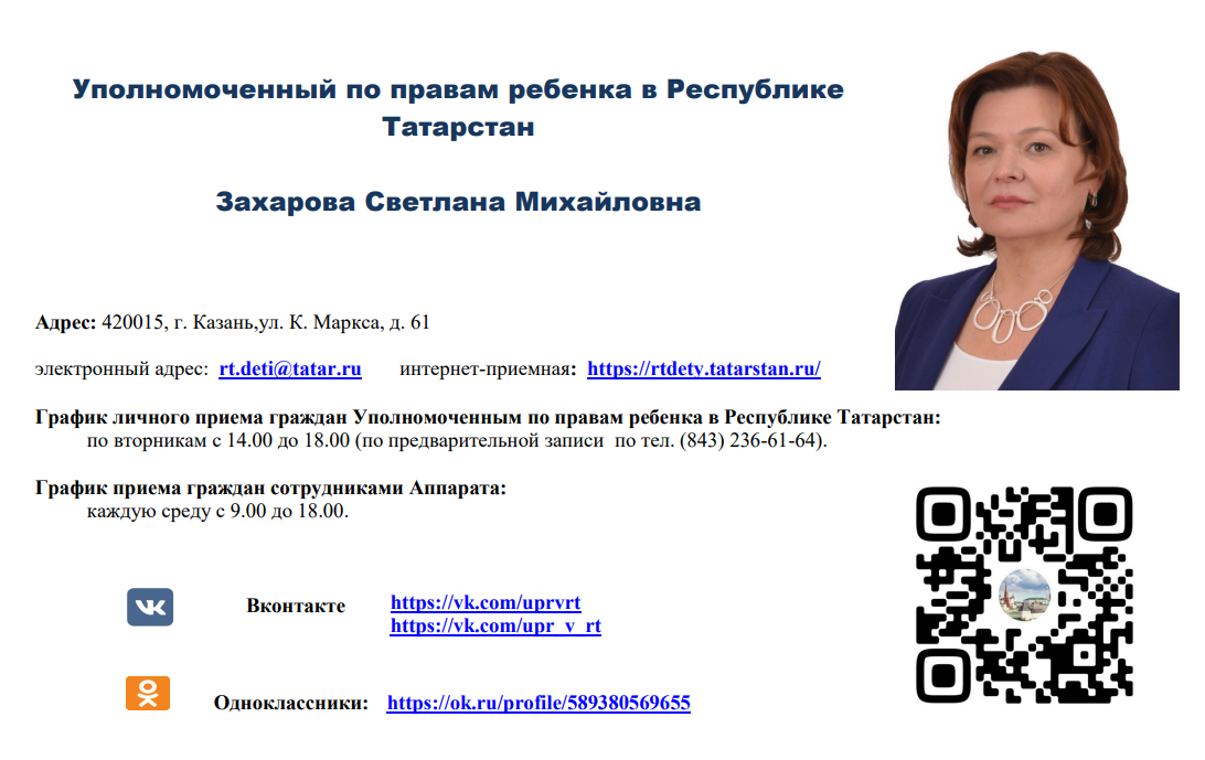 Уполномоченный по правам ребенка в Республике Татарстан Захарова Светлана Михайловн