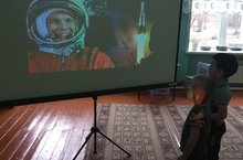 Космонавтика көне- илебез тормышында мөһим вакыйга, ул 12 апрельдә билгеләп үтелә. Бу тема шулай ук балалар өчен дә кызыклы, чөнки космос- ул матурлык, серлелек, яңа белемнәр һәм фантазия киңлеге. Төркемдә күзаллауларны киңәйтү өчен планеталар, космонавтлар, иярченнәр, йолдызлар турында иллюстрацияләр кулланылды.
