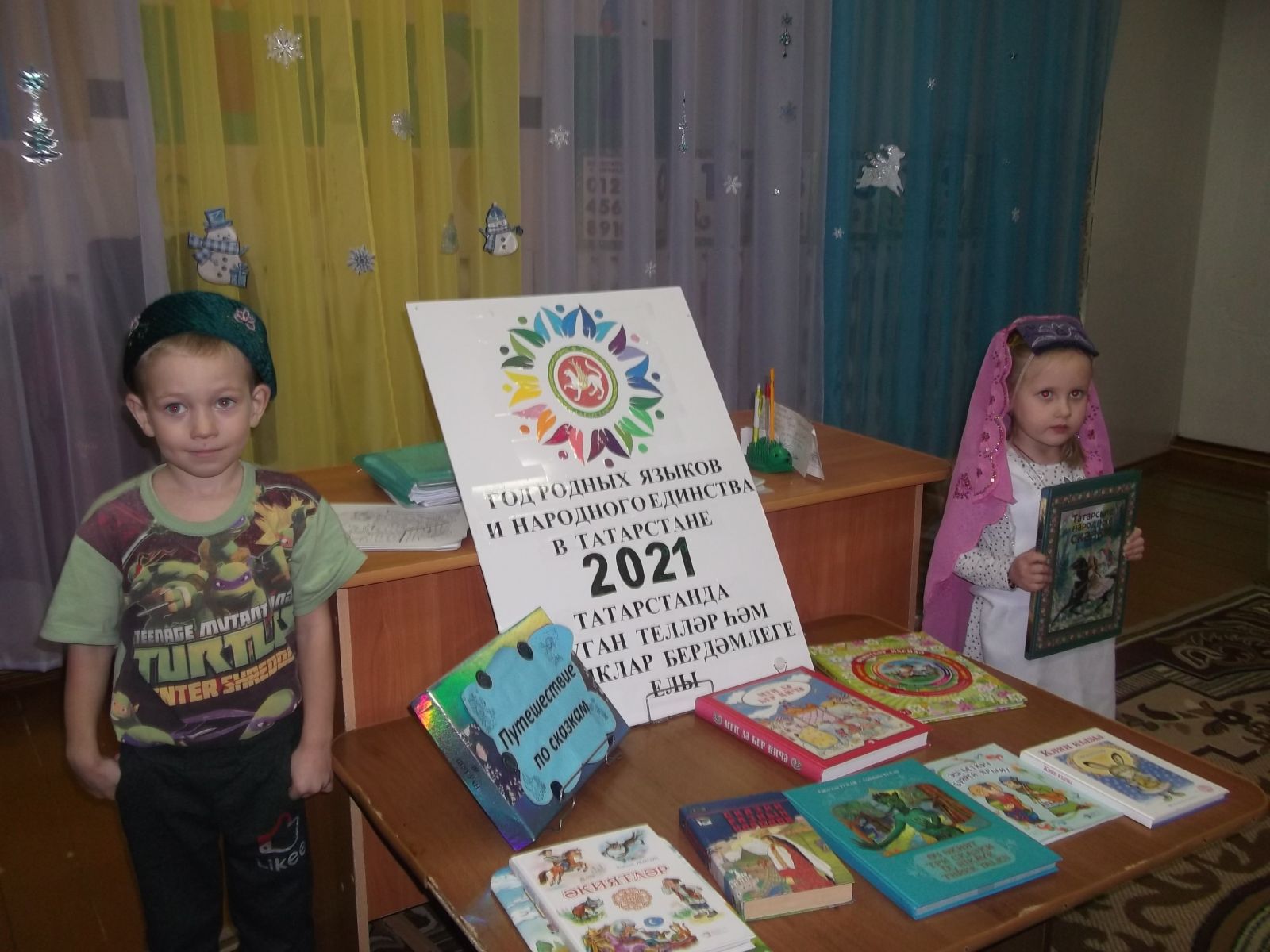 Опубликовано: 29.01.2021В рамках Года родных языков и народного единства в Республике Татарстан в 2021 году. 29 января 2021г. было проведено мероприятие "Путешествие по сказкам", также была проведена Акция " Через сказки к миру на родном языке" совместно с заведующей Николаевской сельской библиотекой Нуриевой Г.А.