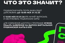 Уважаемые родители! Новогодние каникулы уже близко, поэтому напоминаем о необходимости обновить Пушкинскую карту для Ваших детей.С 1 января 2026 года банком-оператором программы «Пушкинская карта» станет ВТБ. Пушкинская карта от Почта Банка будет действительна только до 15:00 31 декабря текущего года.