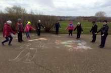 В рамках конкурса рисунков на асфальте "Краски детства" учащиеся нарисовали красочные рисунке на асфальте.