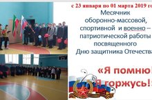 Испокон веков Россия славилась сильными и мужественными людьми, готовыми оберегать и защищать свою Родину. А наша задача сохранить память о воинской доблести и героизме дедов и отцов, на примерах их подвигов воспитать благородство, решительность, смелость. Именно с этой целью ежегодно проводится месячник оборонно-массовой и военно-патриотической работы.
