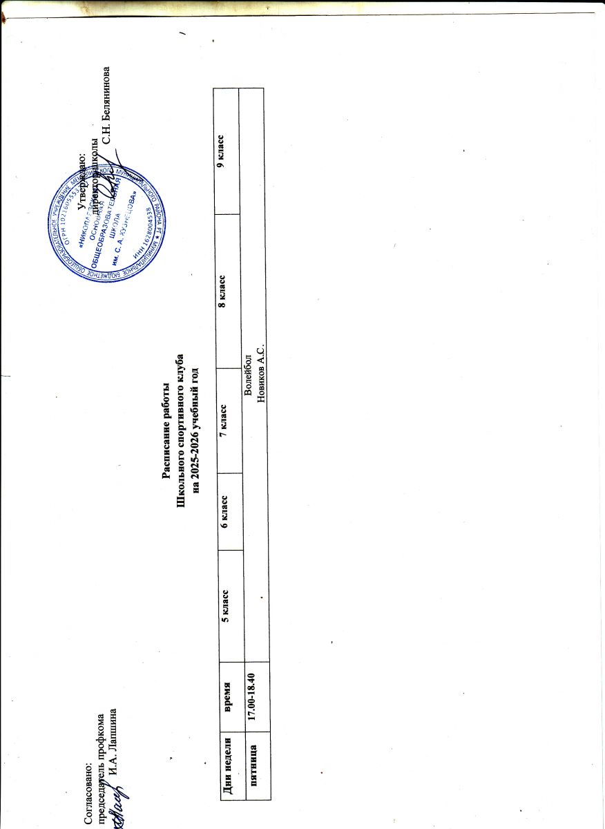 Календарный план шск на 2025-2026 учебный год