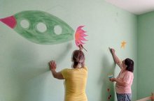 Преподаватели художественного отделения Митюшкина Елена Леонидовна и Горбунова Ольга Владимировна, оформили яркими красками стены в Реабилитационном ценрте "Умырзая".