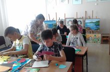 Преподаватель художественного отделения провела урок с гостями из реабилитационного центра "Умырзая", рассказала и показала, как можно совмещать две разные техники в живописи.