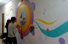 На протяжении месяца ведется кропотливая работа по росписи стен Школы искусств, в рамках выполнения квалификационной выпускной работы учащихся художественного отделения под руководством преподавателя Митюшкиной Елены Леонидовны.
