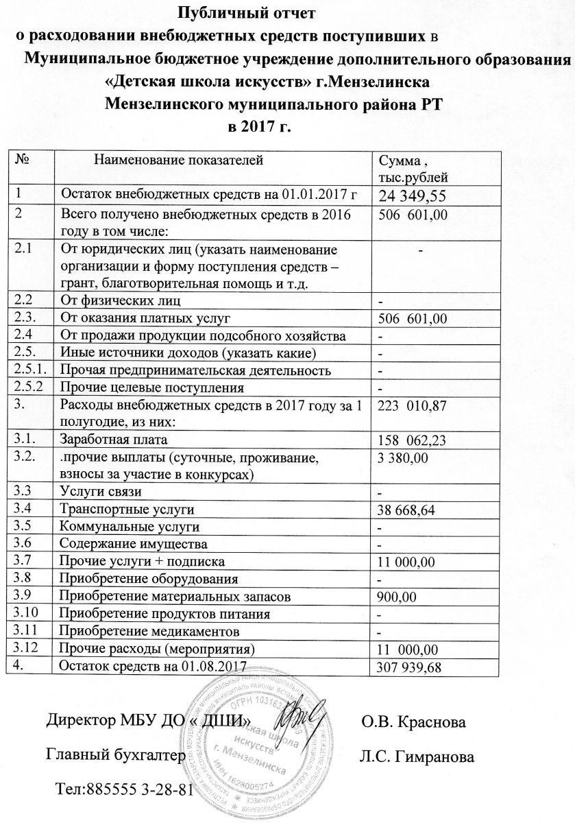 Публичный отчет о расходовании внебюджетных средств ДШИ за 2017 год