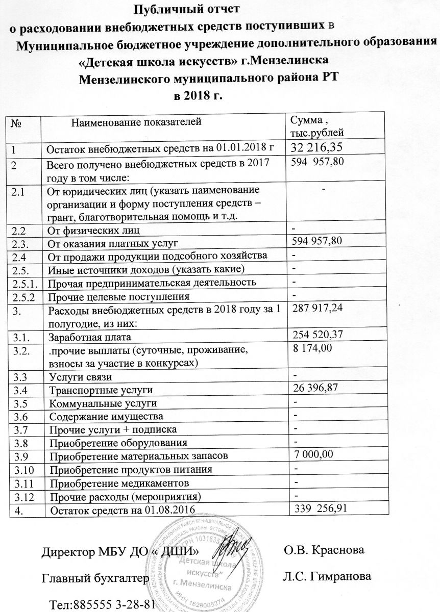Публичный отчет о расходовании внебюджетных средств ДШИ за 2018 год