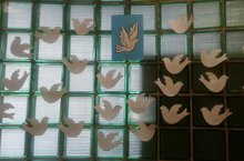 1 сентября во всех классах нашей школы прошел "Урок мира". В старших классах был проведена Акция «Голубь Мира»: голубь является символом мира, символом борьбы против войны, насилия, тревог и слёз. Ребята изготовили бумажных голубей , а затем гости, учителя и учащиеся школы на каждом голубе написали свое пожелание мира для всех людей нашей большой планеты.